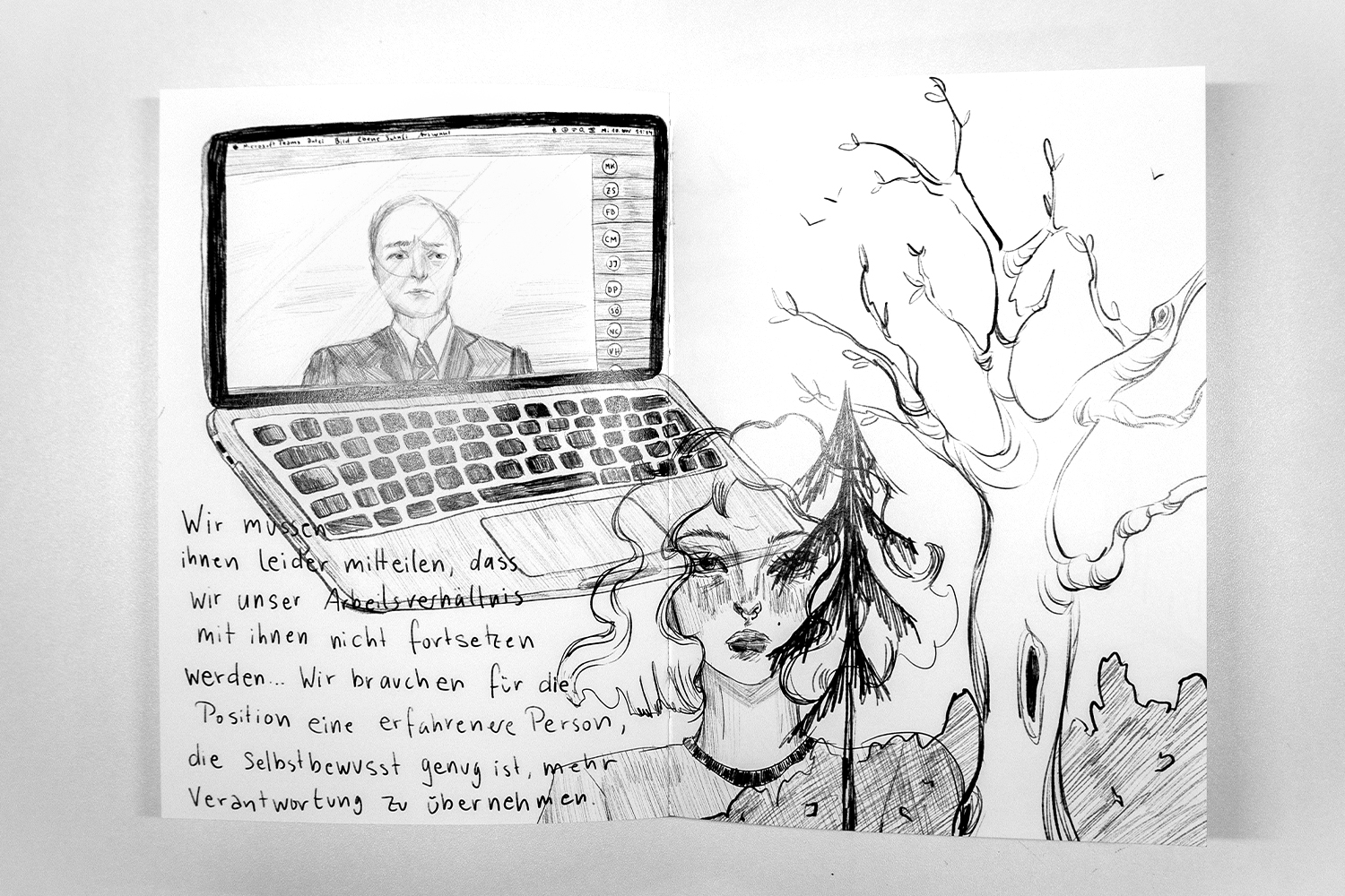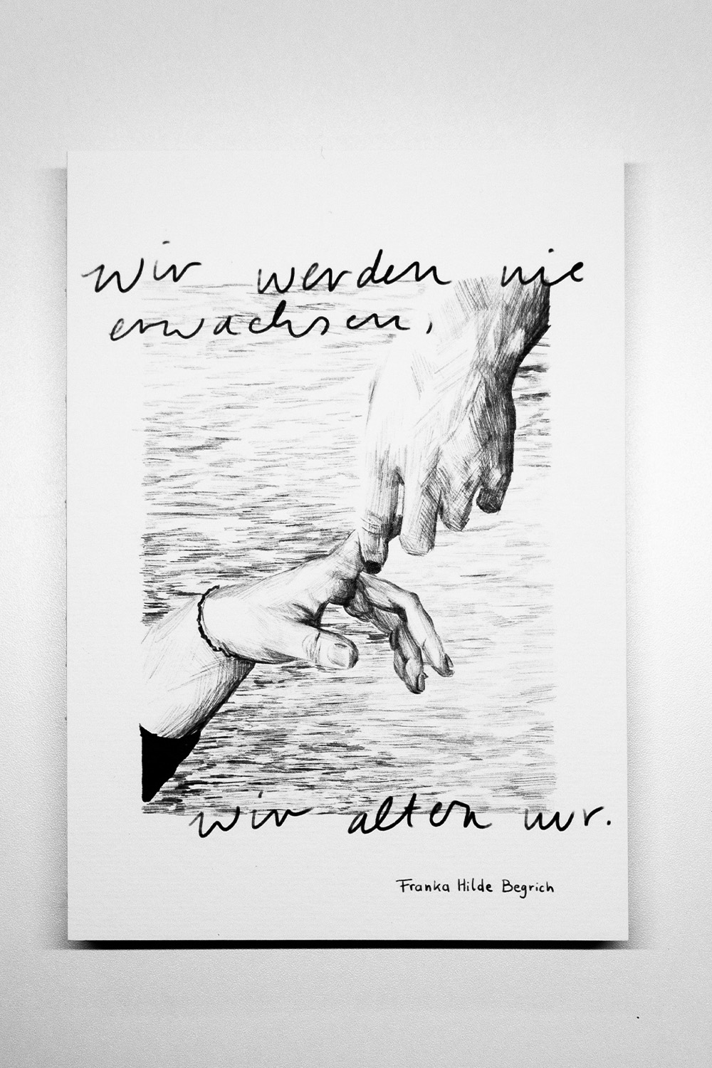 „Wir werden nie erwachsen, wir altern nur“ befasst sich mit der Selbstinfantilisierung von jungen Frauen; ein Bewältigungsmechanismus, bei dem die Betroffenen sich selbst und ihr eigenes Verhalten verkindlichen. Wir folgen einer Protagonistin Anfang zwanzig durch ihren trostlosen Alltag. Für Beistand in ihrer verzweifelten, verwirrten Lage, beschließt sie MUTTER zu kontaktieren, bei der es sich eher um das Konzept einer mütterlichen Figur handelt. Die beiden führen ein vielschichtiges, nuanciertes Gespräch über die Frustration an der Weiblichkeit. Zurück in ihrem Alltag, fühlt sich die Protagonistin bereit, eine erwachsene Frau zu werden.