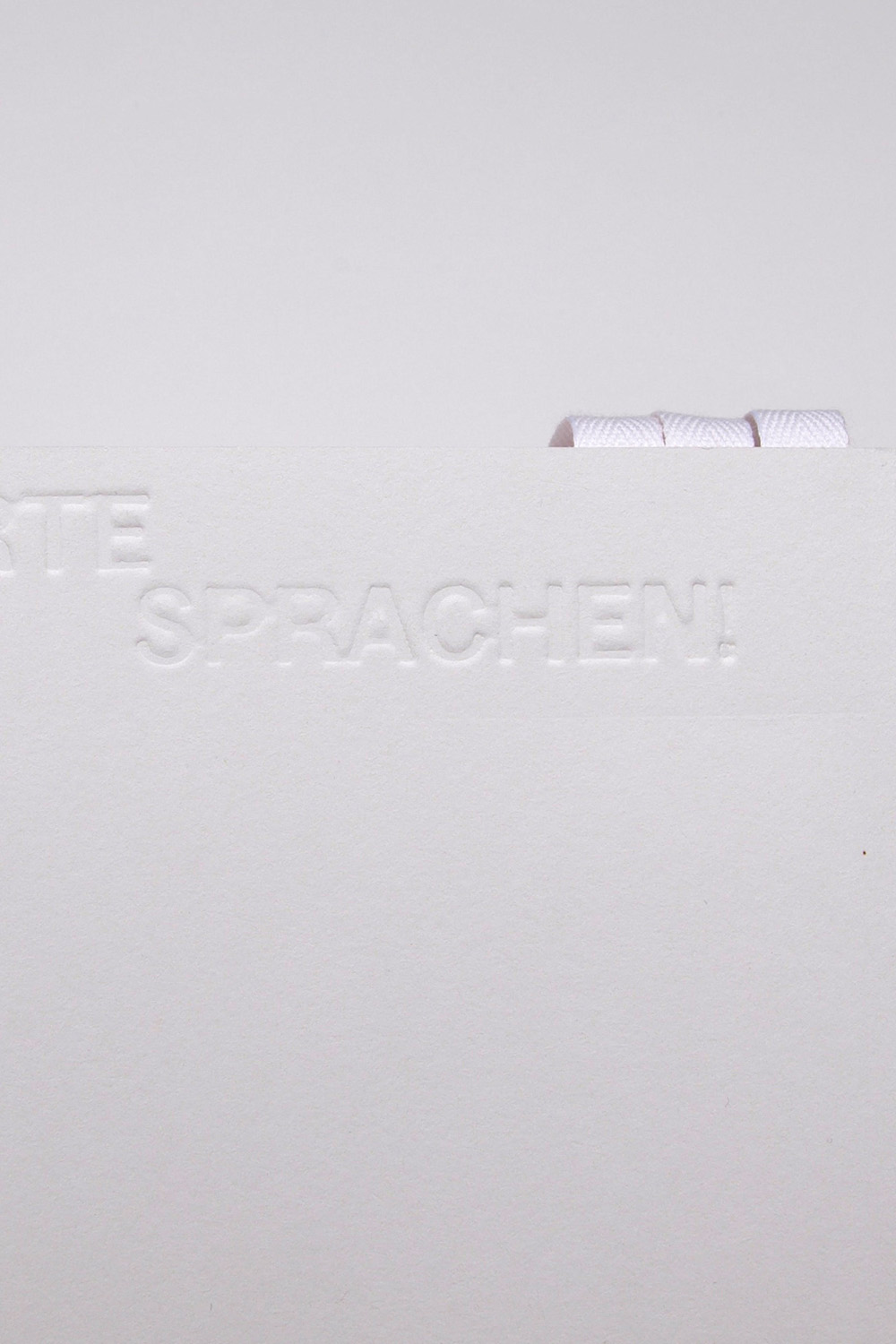 Sprichwort. Sprich Wort! Das ist ein Befehl! Das Wort soll sprechen. Etwas bilden aus sich selbst. Ein Befehl und man weiß, wie der Hase läuft. Na gut, jetzt habe ich Ihnen einen Bären aufgebunden. Schon wieder. Denn bei den eben genannten Ausdrücken handelt es sich um Wendungen, die gerne reden, nicht um Wörter, die endlich sprechen sollen, wenn Sie verstehen, was ich meine. Inspiriert an der französischen Gruppe Oulipo entstehen aus sprachlichen und visuellen Formzwängen neue Bedeutungsräume und gestalterische Ausdrucksformen. Diese Arbeit ist eine offene Einladung an die Rezipierenden zum aktiven Spiel.