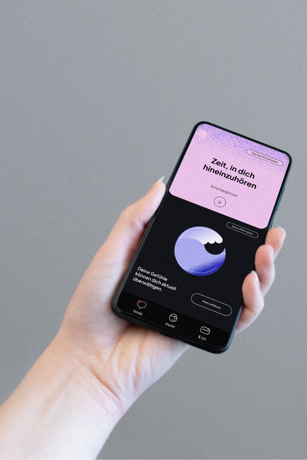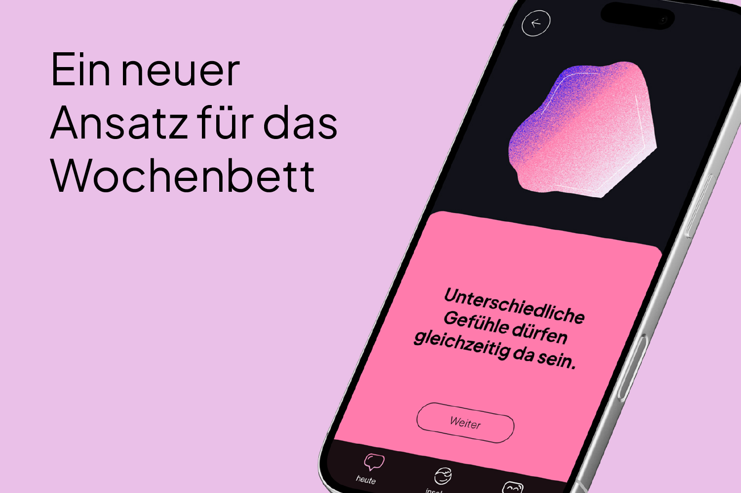 Mit einer Schwangerschaft beginnt eine Zeit, die von hohen Erwartungen und gesellschaftlichem Druck geprägt ist und mit psychischen und körperlichen Veränderungen einhergeht. Während die Vorbereitung sich auf die Geburt und das ungeborene Kind fokussiert, gibt es kaum Hilfsangebote für die, die das Wochenbett durchleben. Hier setze ich mit einer App strategisch an: Im Fokus steht nicht das Kindeswohl, sondern das emotionale Wohlbefinden der neugewordenen Eltern.