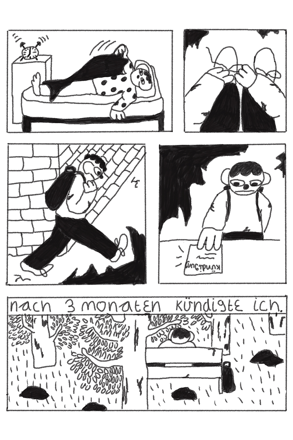 „Nichts als Arbeit“ ist eine autobiografische Graphic Novel, in der ich mir die wichtige Frage stelle: „War ich schon immer schlecht im Arbeiten?“ Es geht darum, herauszufinden, woran es liegt, dass Arbeit für mich so eine große Last ist. Ein schmaler Grad zwischen Selbstreflexion und Kritik an bestehenden Strukturen.