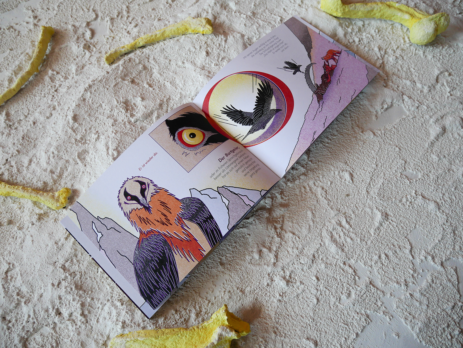 Eine illustrative zum Bartgeier und seiner Wiederansiedlung in den Alpen.
