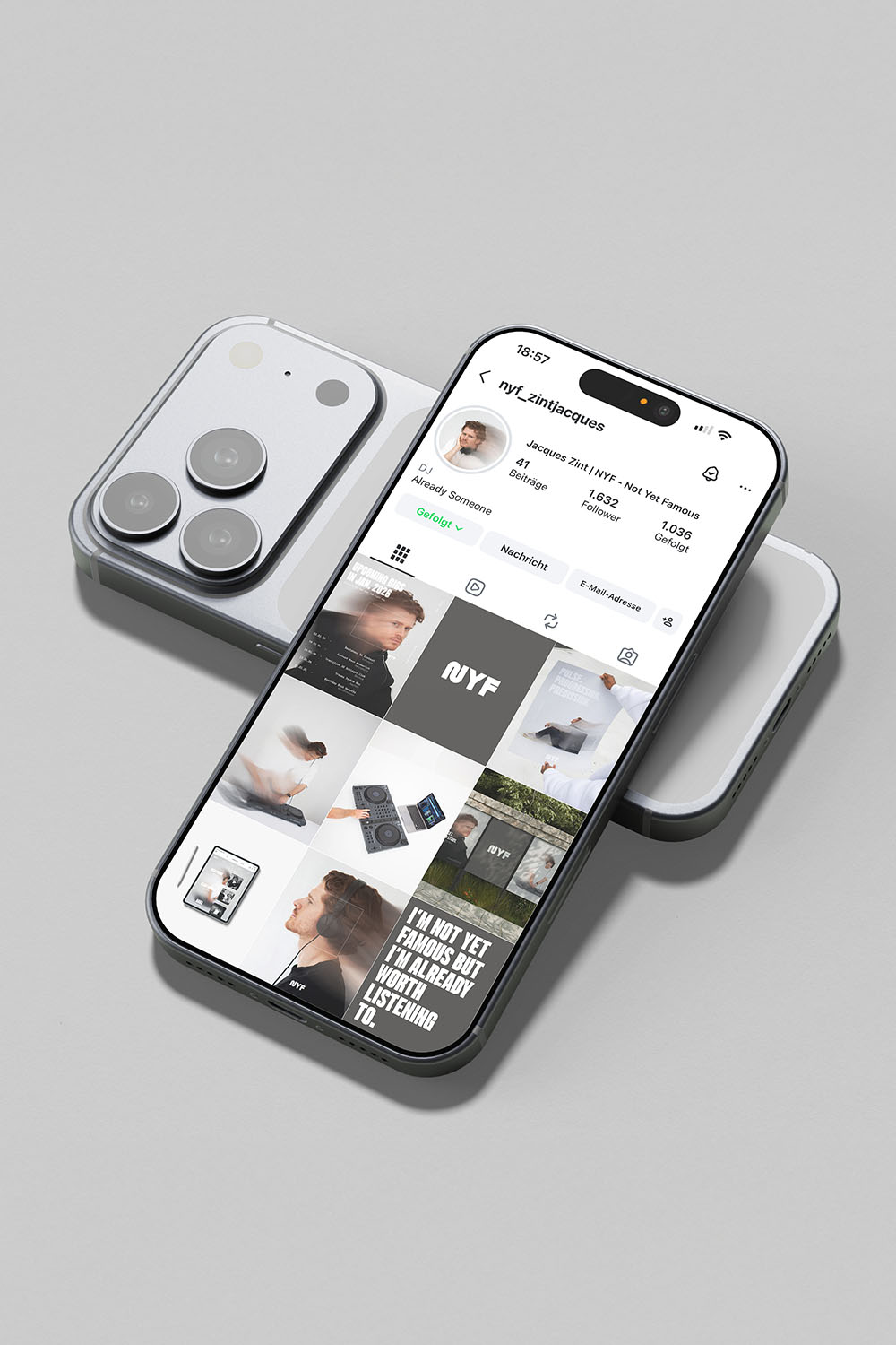 Diese Bachelorarbeit beschäftigt sich mit der Entwicklung einer visuellen Identität für den DJ „Not Yet Famous“ und zeigt, wie sich eine Personenmarke im DJ-Kontext jenseits von visueller Überladung entwickeln lässt. Im Fokus steht die Frage, wie Personal Branding im Techno-Umfeld funktionieren kann, ohne auf optische Lautstärke zu setzen. Das Ergebnis ist ein reduziertes Gestaltungssystem, das Souveränität und Klarheit vermittelt und eine eigenständige Positionierung innerhalb der Szene schafft.